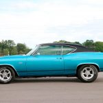 Step back in time with this stunning 1969 Chevrolet Chevelle, a true American muscle car classic. This timeless beauty boasts a captivating Azure Turquoise exterior, a color that radiates a cool, vintage charm, making it stand out from the crowd. Complementing the vibrant exterior is a sleek black interior, offering a luxurious and sporty contrast.